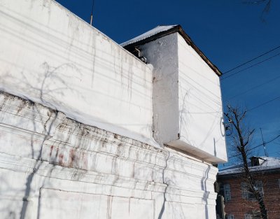 Центральная часть здания венчается высоким куполом, а на углах расположены меньшие купола.Фасад украшен декоративными элементами, а купола венчают ажурные кресты.
