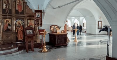 Внутри храма можно увидеть характерную для этого периода роспись, выполненную по канонам православной иконографии.