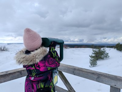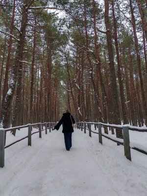 Утро началось с прогулки на Песчаную гору, прекрасную видовую площадку, откуда открывается фантастический вид на замерзшие воды Балтики. Хвойный лес и крохотные дуки - маленькие лесные эльфы из прусских легенд