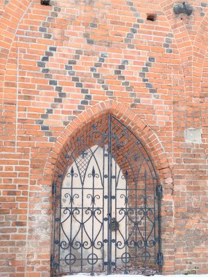 Со стороны города ворота имеют красивый фасад. Первый ярус украшают перспективные порталы стрельчатого очертания, состоящие из нескольких уходящих в глубину и уменьшающихся в размерах уступов из фигурного керамического кирпича. У второго яруса – три ниши, в которых расположены три горельефа: чешский король Отакар II (слева), король Пруссии Фридрих I (в центре), последний магистр Тевтонского ордена и первый герцог Пруссии Альбрехт (справа). Под ними разместились гербы Богемии, Пруссии и Бранденбурга, а выше ниш - геральдика исторических прусских земель Самбии и Натангии