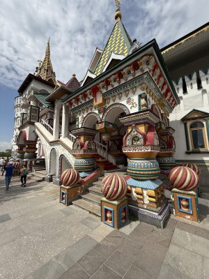 А уже потом, в конце 90-х, появился этот «Измайловский кремль». Проект показали городу в 1998-м, строили несколько лет, и в итоге выросло китчевое, яркое, неорусское нагромождение башен и шатров.