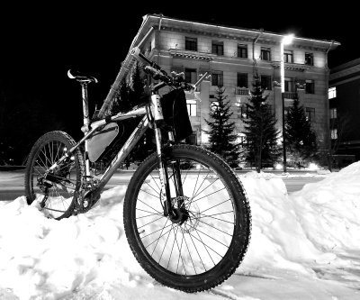 Суровая зима в Красноярске на радость любителей зимнего велосипеда