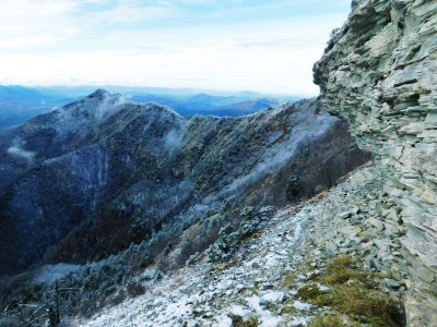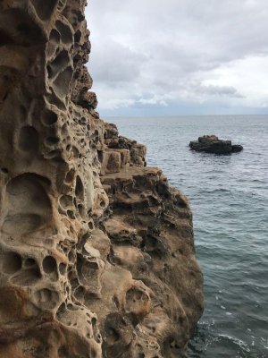Горы, скала и мыс, вдающийся в море.