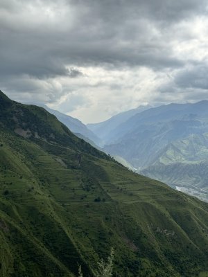 И вот вбиваем в навигатор нужную точку и выдвигаемся. Если вдруг вы будете ехать туда и увидите, что все впереди идущие машины сворачивают налево (примерно минут за 10 до окончания маршрута), то едьте за ними. Даже если ваш навигатор, как и наш, показывает, что вам направо😹 но мы же по навигатору🤦🏼♀️ и вот ведет он нас через маленький аул в горах с одной узкой дорожкой на одну машину. Кстати, после дождя ее подмывает и становится скользко. А еще там большая колея. И если вдруг вам на пути встретиться буханка(как нам), то разминуться не получится. Собственно нам пришлось заехать к местным жителям во двор чтобы пропустить буханку с туристами. В целом сложно, но можно. Доехали мы почти до самого верха на своей машине, но дальше не пускают местные, зарабатывая на доставке всех желающих на своих уазиках, патриотах и буханках. 300₽ с человека/ 1000₽ на лошадях.