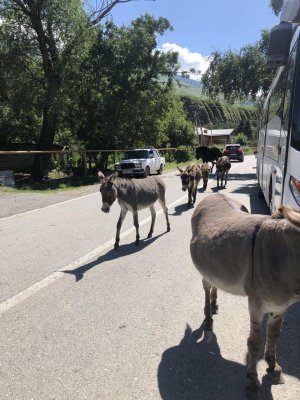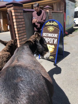 Все на том же Кавказе летом 2024.. Поехали мы с подругой в Северную Осетию на экскурсию посмотреть горы, ущелья, крепости, жилища алан.. и вот автобус довез нас до деревни, где можно было пообедать в кафе. Очень живописно вокруг: ослики, свободно гуляющие по главной улице, ели даже мятные конфеты с рук.. красота вокруг невероятная: горы утопают в зелени, цветах, глаз не оторвать, и в кафе пекут осетинские пироги, ароматные, вкусные и дают на дегустацию вино, тоже между прочим очень вкусное. Пироги настолько вкусные, что решили мы прикупить на вечер два огромных пирога, потому как экскурсия заканчивалась поздно и готовить уже вечером не было бы сил. Впечатленные удивительными пейзажами едем мы уже обратно в автобусе, солнце садится, в дымке горы на горизонте, мы , умиротворенные, знаем, что нас еще ждут чудесные пироги, высаживаемся из экскурсионного автобуса. и уже на остановке обнаруживаем, что оставили наши пироги в этом автобусе. Подружка плакала)