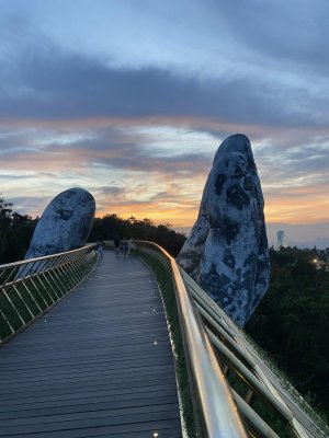 «Золотой мост» находится в Fantasy Park недалеко от города Дананг (курортный город на берегу моря. В самом городе тоже есть довольно интересный мост, с драконом, который по вечерам извергает пламя)