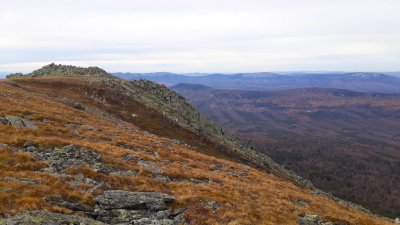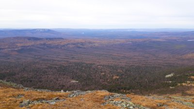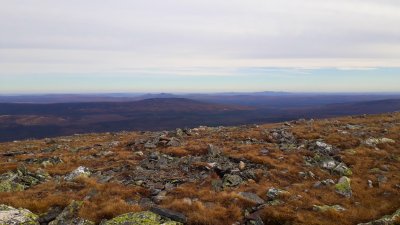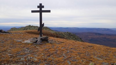 и оставшийся километр проходит по ровному плато с небольшим набором высоты. На самой вершине установлен крест. Наконец-то цель достигнута, высота 1400 метров. А какие открываются виды, впрочем описывать нет смысла, смотрите сами на фото. На подъём у меня ушло 3.5 часа в хорошем темпе и с одним "перекуром" на обед. Но закладывать лучше 4 часа. Обратный путь ничем не легче: сново прыгаю с камня на камень, пробираясь через курумник, крутой спуск и самый, наверное, лёгкий этап - оставшиеся 8 км под небольшой уклон до места старта. По времени вышло так: старт на тропу в 11:30 и вернулся обратно к стоянке уже в 18:40. Ещё парочка фото на обратном пути