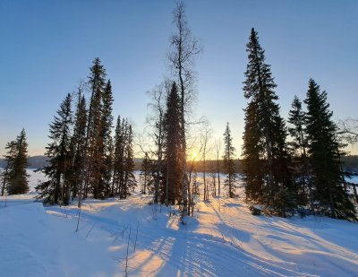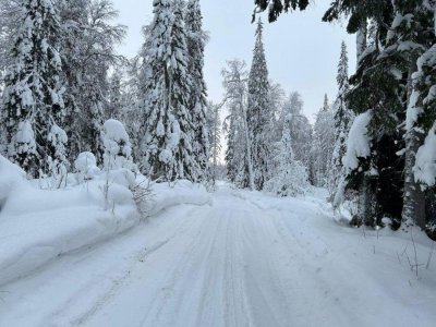 Огромные снежные шапки на соснах и елях.Солнце купает лес в редких лучах.Невозможно насмотреться.