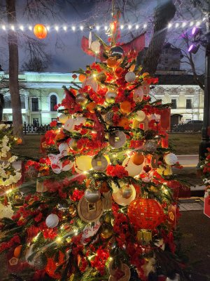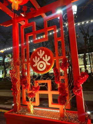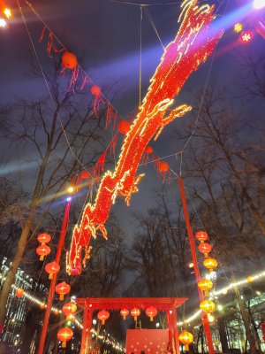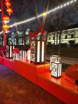 Китайский новый год в Москве! Тверской бульвар украшен ярко, красиво, вокруг китайская музыка и интересные павильоны с традиционными товарами из Китая.