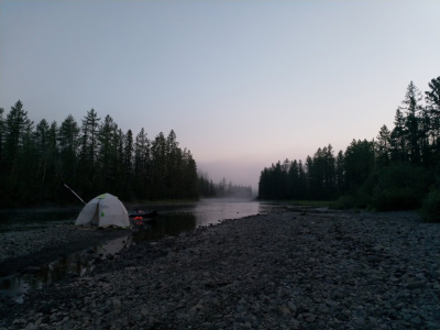 "только самолетом можно долететь". плато Путорана, Река Деген, полярный день. Полночь. 2019