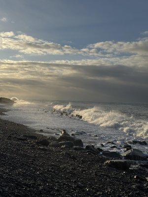 Смотрите, как волны бьются о камни, как свет рассвета мягко подсвечивает гальку и оставляет блики на воде. И всё это под морской шум, который одновременно расслабляет и заряжает.