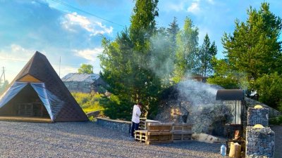 - Можете заказать Русскую баню на дровах и окунуться в озеро
