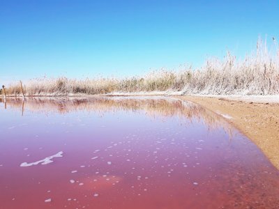 В полутора км от города есть солёное розовое озеро Laguna Salada.