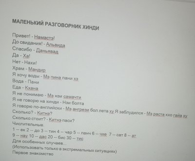 Изучение небольшого разговорника хинди и местных блюд.