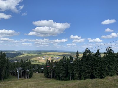 Во-первых! Рядом есть горнолыжный склон, да, небольшой, однако я никогда ранее не видел, как выглядят горнолыжные трассы летом. В целом, я бы покатался на чем-нибудь безопасном в такое время года:)