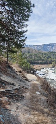 В селе Чемал (Республика Алтай) есть остров Патмос. А от него до Чемальском ГЭС тянется одно из моих любимых мест для пешей прогулки - Козья тропа. Думаю, называется она так из-за того, что люди, как козы, скачут по корням и камням по узким участкам прямо на скалах над Катунью.