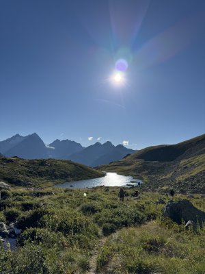 Красивые виды продолжаются. После о. Краторное нас ждал по сути только спуск до места ночевки. С прекрасным видом на озеро и горы позади него. Мы ждали ночь, чтобы ещё раз насладиться чистейшим звездным небом.