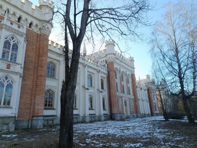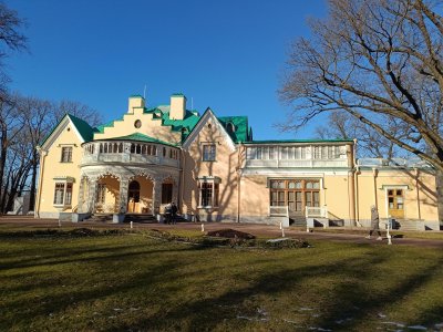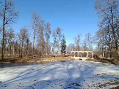 Не такой пафосный, как его сосед - знаменитый Нижний парк, но зато спокойный, безлюдный, уютный. Небольшое жёлтое здание - это дворец-коттедж - летняя резиденция Николая I, а двухэтажное здание в виде средневекового замка - императорские конюшни 🐎🐎🐎 Справедливости ради надо сказать, что это целый комплекс, в который входили конное ведомство, манеж, ветеринарная лечебница, кузня, кладовые для фуража и упряжи, жилые помещения для сотрудников.