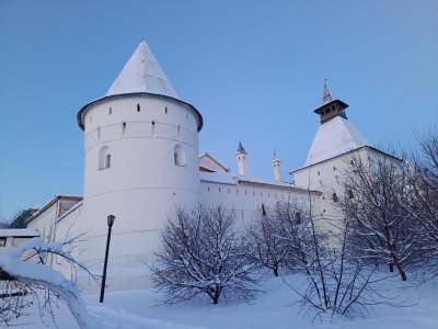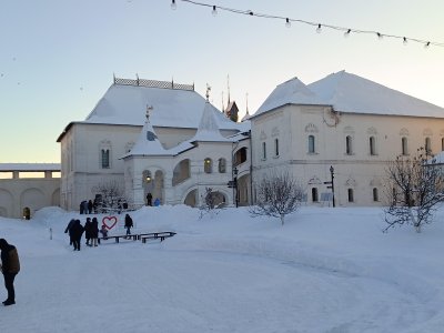 Помимо древней истории известен ещё тем, что здесь в кремле снимали Ивана Васильевича 😄 Места действительно узнаваемые - крыльцо, галерея, звонница, да ещё на каждом шагу напоминалочки