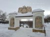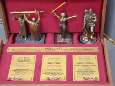 Место встречи Европы и Азии на реке Урал на фоне Металлургического комбината. Памятник " Тыл -Фронту". Один из триптиха меч, выкованный на берегу Урала.