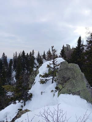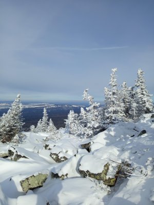 Мой маршрут начинается от деревни Катавка. По старой лесовозной дороге нужно идти всё прямо, до седловины хребта, это и есть перевал Сибирский, высота 910 метров. Далее дорога идёт вниз с перевала через ледяной фонтан к кордону "У трёх вершин". Но в этот раз мне не туда, а на вершину хребта, поэтому сворачиваю направо по хорошо натоптанной тропе. Вот тут маршрут становится чуточку сложнее, т.к. движение по хребту сопровождается курумником, извилистыми поворотами, спусками и подъёмами. Учитывая, что на улице зима, то само собой на открытых участках тропу моментально переметает ❄️ и приходится идти наугад, ориентируясь по карте, по меткам на деревьях и нащупывая плотный снег под ногами. Если проваливаешься по колено и глубже - значит сбился с тропы. С перевала до вершины остаётся набрать почти 300 метров. На вершине как обычно - ветер порой сбивает с ног, тропа вообще отсутствует и самое опасное - можно провалиться в щели между курумником, которые под снегом не видно. Но оно того стоило, виды с вершины не описать словами.....