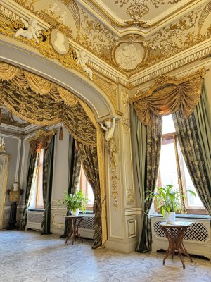 История этого места просто завораживает! Величественное здание в стиле необарокко хранит в себе дух XIX века. Внутреннее убранство поражает воображение: парадная лестница с мраморными колоннами, живописные плафоны, изысканная лепнина. Особенно впечатлил Белый зал с великолепной акустикой – говорят, здесь даже сейчас проходят концерты классической музыки.Будуар Надежды Половцевой, в которой сохранилась люстра, выбранная ею самой, замечательный мраморный столик. Нотная гостиная с кованными балконами для музыкантов, бальный зал. Библиотека с камином 16 века как акцент интерьера, имеется даже лифт 19 века для подьема на верхние полки с книгами. Двери в бронзовом зале имеют рисунок собранный из ценных пород дерева. Такие есть только у Юсуповых и в зале Леонардо в Эрмитаже.