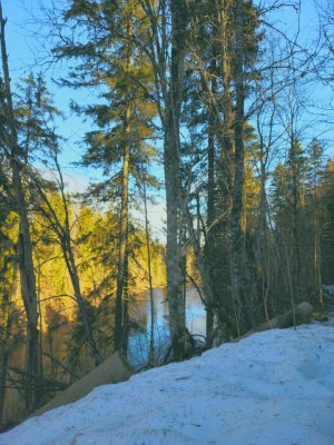 На берегу озера, да возле леса костерок можно было запалить.