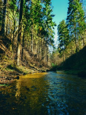 В прошлом веке река была перегорожена плотиной, которая образовывала небольшое озерцо с небесно-голубой и очень прозрачной водой.