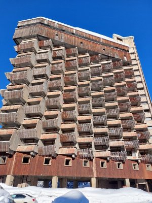 А пока новый отель не появился вспомним одну из самых красивых и известных заброшек Советского союза. Проектирование началось в далеком 1979 году. Оно было ярким представителем советского модернизма и органической архитектуры. Фасады украшали знаменитые деревянные решетчатые балконы, напоминающие кабинки канатной дороги и горные утесы.За эту форму их еще называют - пчелиными сотами. Само здание стояло на мощных опорах - ножках. Что позволяло проезжать прямо под ним на лыжах.